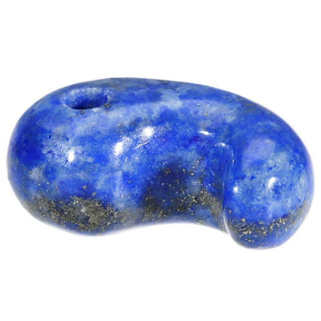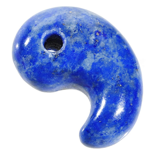 とても綺麗な青色のラピスラズリで作られた、縦1.6cm程の小ぶりな勾玉です。