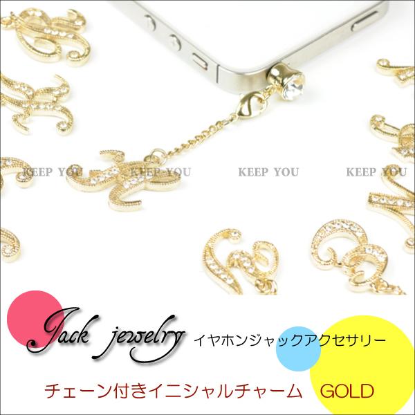 【メール便対応】スマートフォンピアス イニシャル ロングチャーム付き GOLD イヤホンジャック アクセサリー【スマートフォンピアス/iPhoneピアス/スマートフォン アクセサリー/スマートフォン チャーム/スマートフォン ストラップ】┃