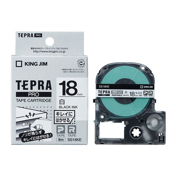 キングジム PRO テープカートリッジ キレイにはがせるラベル (18 幅/白テープ/黒文字) SS18KE返品種別A