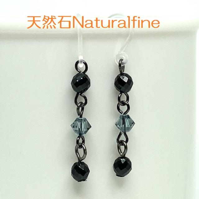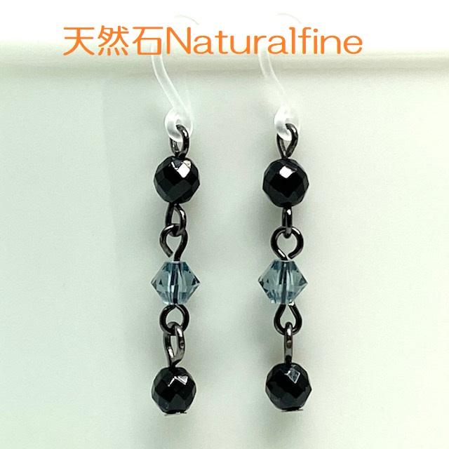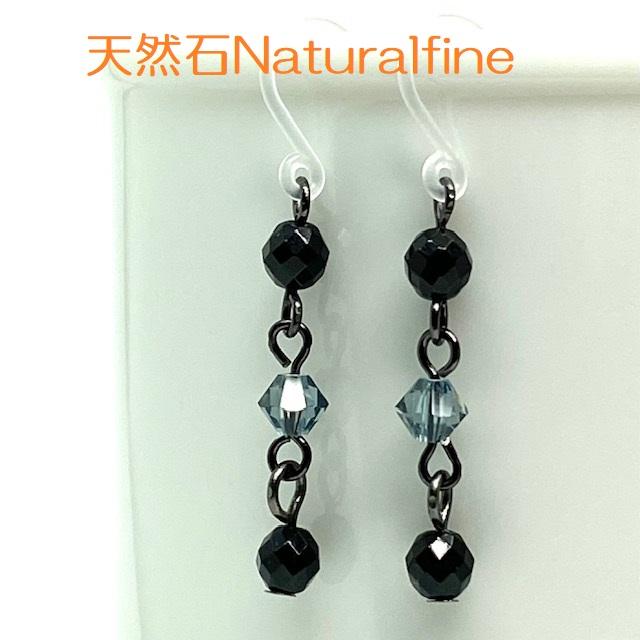 天然石オニキスとスワロフスキーのピアス(イヤリング)です。 オニキスは、表面がカットされているので光によりキラキラ反射します。