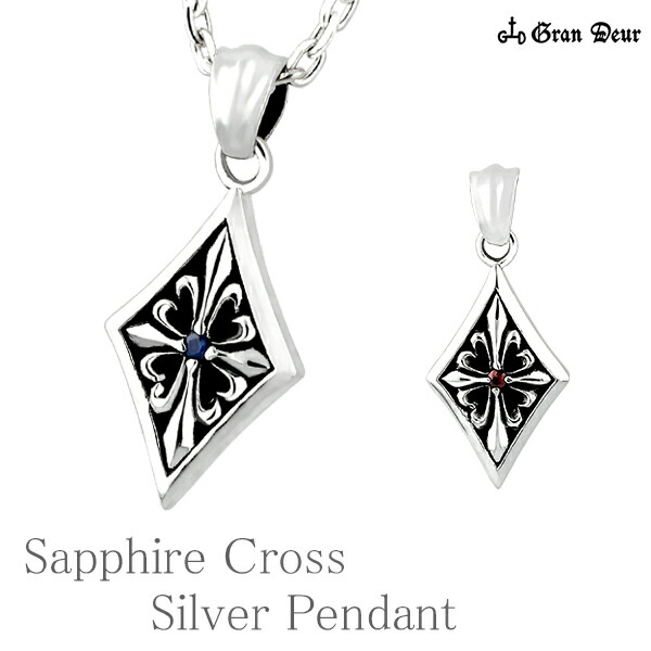 【GRAN DEUR】2カラーサファイアクロスプレートシルバーペンダントトップ ペンダントヘッド(チェーン付)送料無料/メンズ ネックレス シルバー ブランド