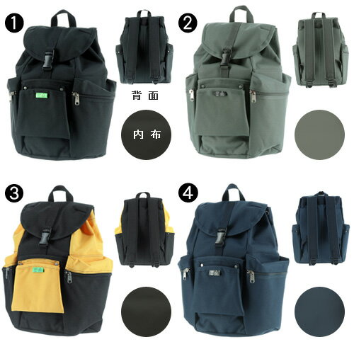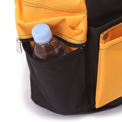 | 粗い感じに織られたポリエステル素材を使用し、スポーティなワークテイストに仕上がったリュックサックです。 工具入れをモチーフにデザインされたポケットがアクセントに! 丁寧な縫製で仕上がっており、ハードな使用にも耐えられる設計です。 背中・肩の部分にはクッション材が仕込まれており、身体の負担を軽減! メイン収納部には撥水性に優れたPVC加工が施されており、ペットボトル等も収納出来ます。 サイドのポケットは、小冊子も入るサイズです。 |