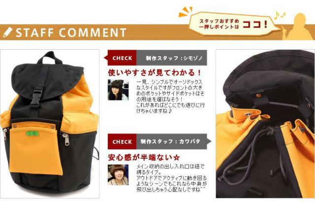 | 備考 | 【メイン開閉】バックル、ドローコード 外側/ オープンポケット×2 ファスナーポケット×2 | ||