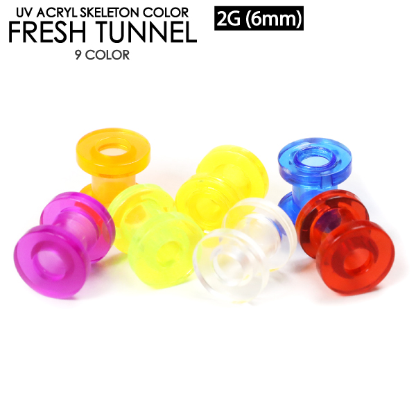 【メール便対応】UVアクリル スケルトン フレッシュトンネル 2G(6mm) 透明 ネジ式で開閉 アイレット イヤーレット ボディーピアス ボディピアス ロブ 2ゲージ(6ミリ)┃
