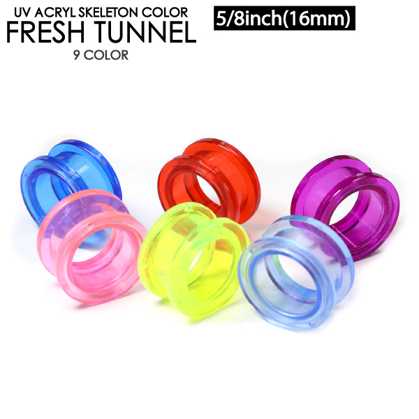 【メール便対応】UVアクリル スケルトン フレッシュトンネル 5/8inch(16mm) 透明 ネジ式で開閉 アイレット イヤーレット ボディーピアス ボディピアス ロブ 5/8インチ(16ミリ)┃