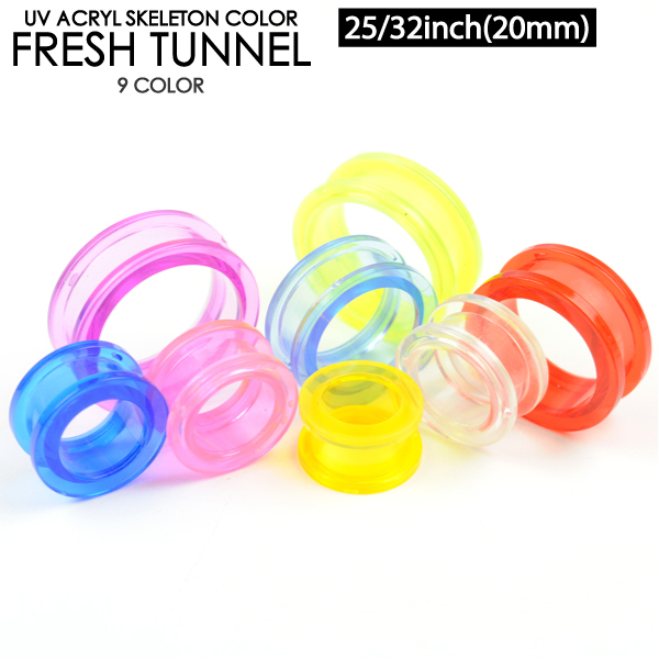【メール便対応】UVアクリル スケルトン フレッシュトンネル 25/32inch(20mm) 透明 ネジ式で開閉 アイレット イヤーレット ボディーピアス ボディピアス ロブ 25/32インチ(20ミリ)┃
