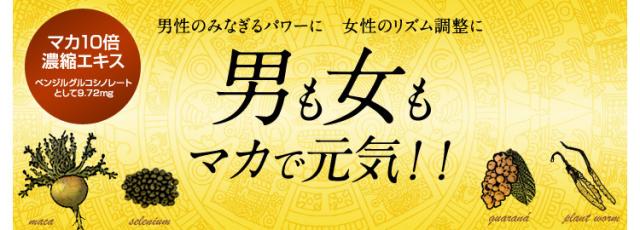 | 1日あたり:3粒1065mg 熱量:4.4kcal、たんぱく質:0.36g、脂質:0.08g、炭水化物:0.55g、食塩相当量:0.002g、亜鉛:10.0mg、セレン:60μg マカ濃縮エキス末:405mg (ベンジルグルコシノレートとして9.72mg)、ガラナエキス末:120mg、冬虫夏草菌糸体末:60mg |