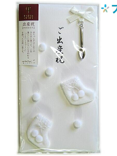 デザインフィル 祝金封 祝封筒 金封 ご 出産祝い 内祝い 白 25086006 祝儀袋 冠婚葬祭用品 ミドリ MIDORI銀のスプーンアタッチメント ペーパークラフト加工 金封可愛らしい金封