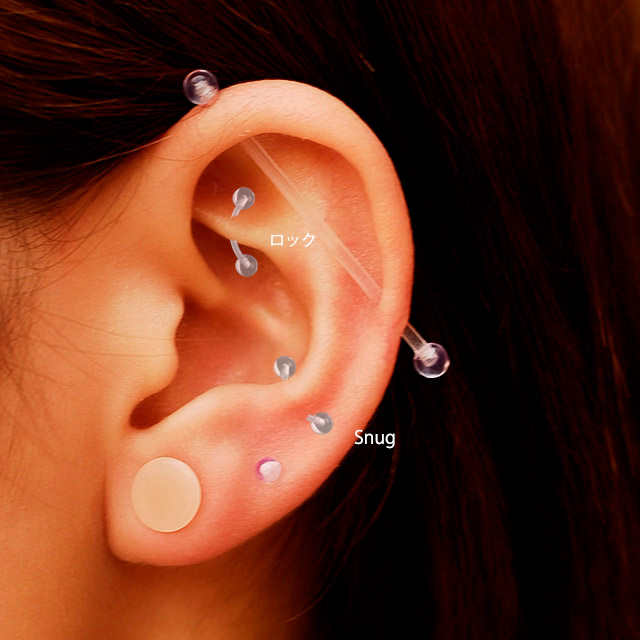 透明ピアス 16g クリア バナナバーベル アイブロー 軟骨ピアス 金属アレルギー対応 つけっぱなし ルーク ロック スナッグ ボディピアス 眉ピ