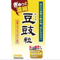 豆鼓にサラシア、ガルシニア抽出エキス、バナバ抽出エキス、クロム含有食用酵母を配合した健康食品です。黒豆から生まれた豆鼓の濃縮エキスを粒タイプにしました。