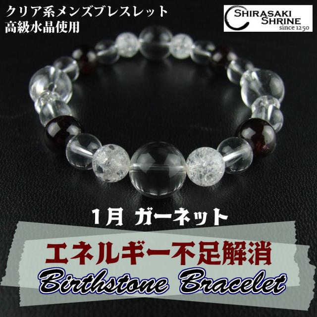 1月の誕生石【ガーネット】パワーストーンブレスレット 神社でお清め・お祓い済み 内周16.5cm/高級桐箱付き/メンズ/守護石/お守り/祈願済み