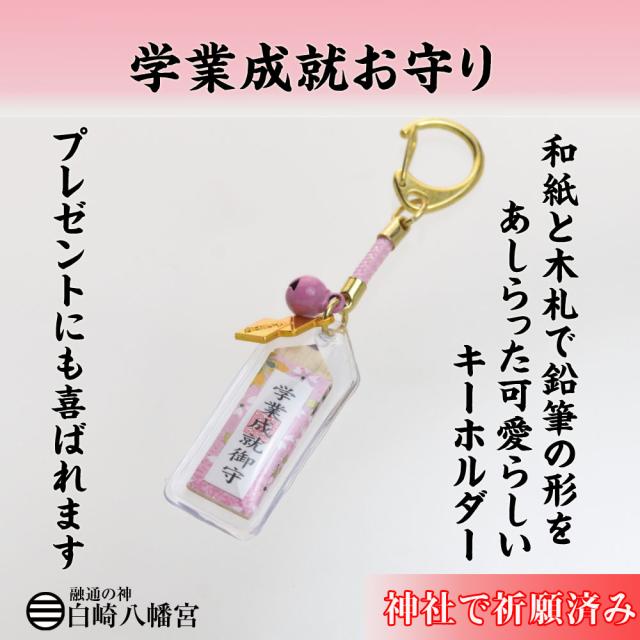 学業成就お守り☆えんぴつ型ピンク☆キーホルダー☆岩国に鎮座する神社白崎八幡宮で祈願済み