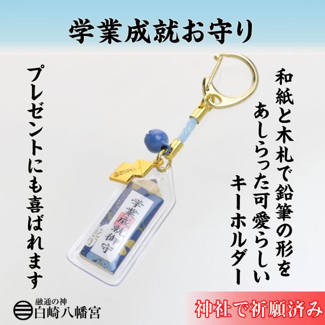学業成就お守り☆えんぴつ型ブルー☆キーホルダー☆岩国に鎮座する神社白崎八幡宮で祈願済み