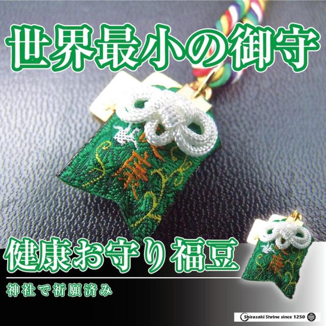 健康お守り 福豆 世界最小 岩国に鎮座する神社白崎八幡宮で祈願済み