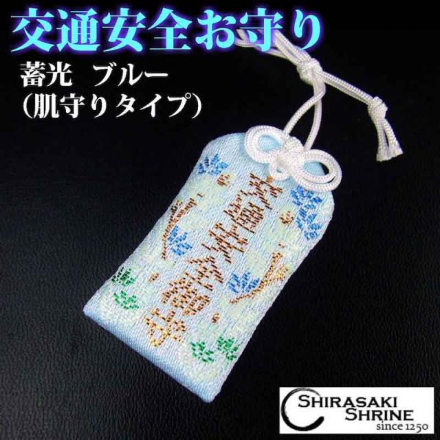 交通安全のお守り 蛍光お守り (ブルー) 肌守りタイプ 神社で祈願・祓い清め済み