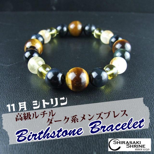 幸運と希望を!メンズ【シトリン】11月の誕生石ブレスレット★ルチルクォーツ使用★