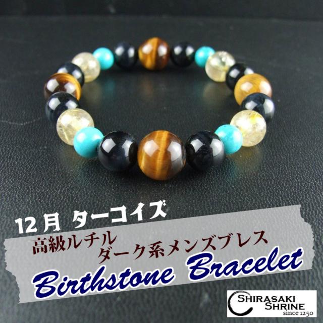 災いから身を守る! メンズ【ターコイズ】12月の誕生石 ブレスレット パワーストーン ★ルチルクォーツ使用★