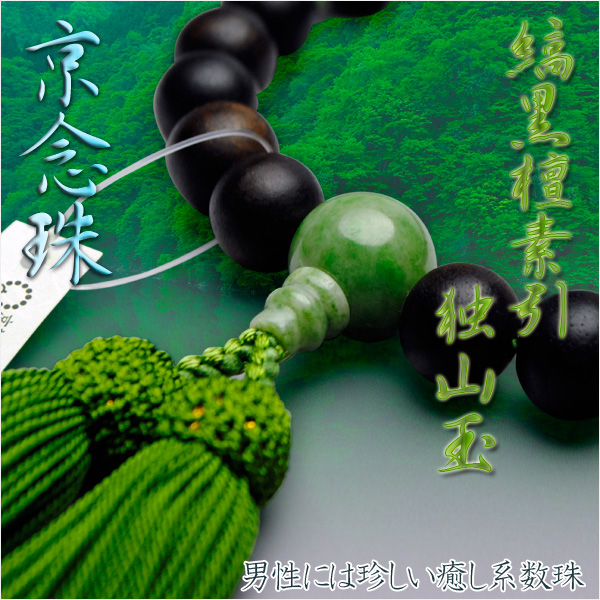 京念珠【縞黒檀素引独山玉仕立】男性用数珠・正絹頭付房 ネコポス送料無料