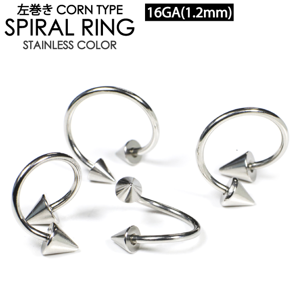 【メール便対応】【左巻き/逆巻き】ツイスト スパイラル スパイク 16G(1.2mm) コーン サージカルステンレス316L製【ボディピアス イヤーロブ ヘリックス アウターコンク トラガス】16ゲージ┃