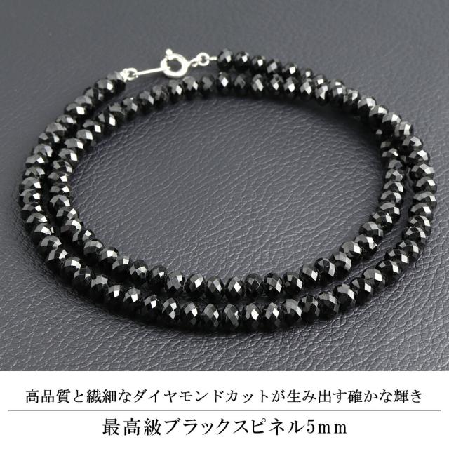最高級 5mm ブラックスピネル ネックレス 40 45 50 cm 高品質 ダイヤモンド カット ブラック スピネル 黒 石 ブラックスピネルネックレス 8月 誕生石