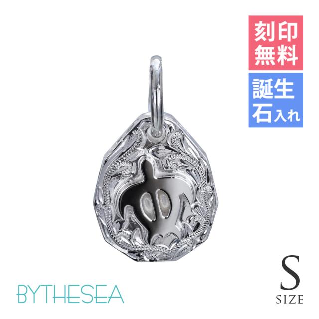 ハワイアンジュエリー ホヌ ペンダントトップ 刻印 無料 誕生石入れ可 浮彫りホヌ Sサイズ シンプル お守り シルバー925 ネックレス チェーン別売 ペンダントヘッド BY THE SEA バイザシー 彼女 妻 女性 レディース 誕生日 プレゼント ホワイトデー 【品番:SP325S】