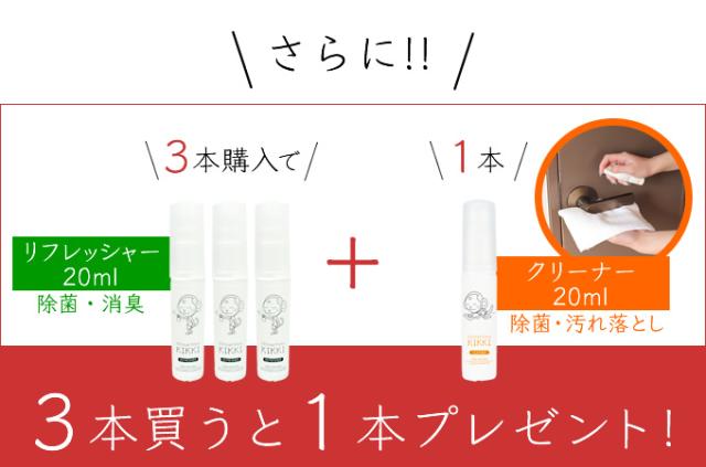 ★メール便★ シュシュキッキ <リフレッシャー・除菌・消臭ミスト> 20mL (携帯サイズ)※3個ご購入毎にクリーナー(除菌/汚落し)20mL+1個プレゼント ノンアルコール 消臭 携帯用 ( 夏用マスク 冷感マスク 涼しいマスク ひんやりマスク )に マスクスプレー 日本製