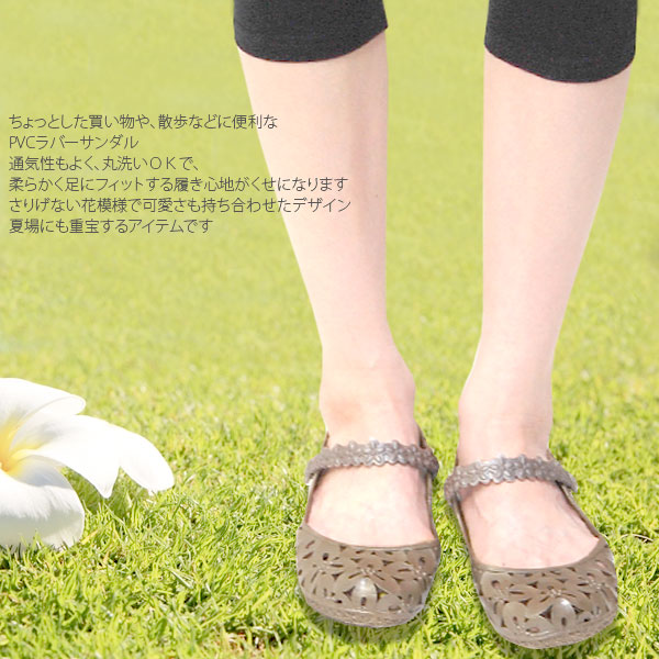 サンダル レディース 靴 ぺたんこ ラバー フラワー 軽量 デザイン ラバーサンダル ローヒール パンプス ポイント消化 (hw751) PRD