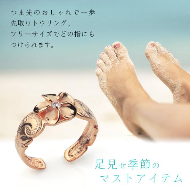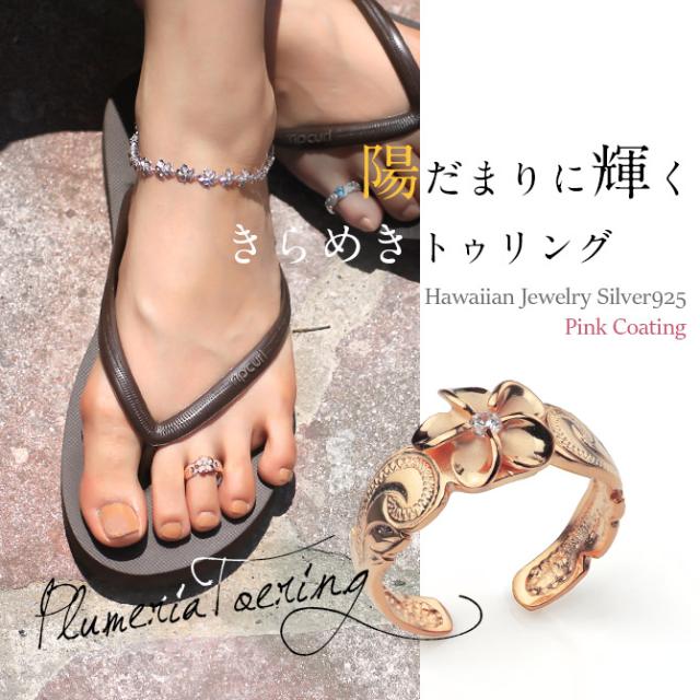 ハワイアンジュエリー トゥリング トゥーリング 足の指輪 フリーサイズ 彩り 華やか プルメリア シルバー925 ピンクコーティング ジルコニア トウリング メール便 リング 彼女 妻 女性 レディース 誕生日 プレゼント ホワイトデー 卒業式 入学式 【品番:TR1349】