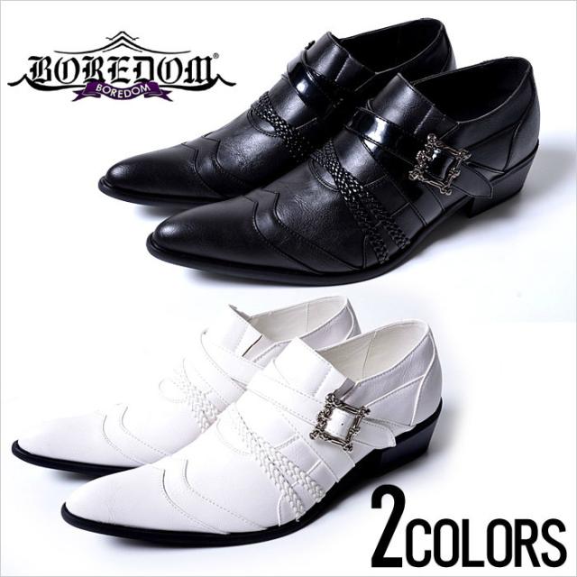 靴 ドレスシューズ メンズ BOREDOM ボアダム ウイングチップロングノーズベルテッドシューズ ブラック ホワイト 即日発送 BITTER系 ビター系 [3253]