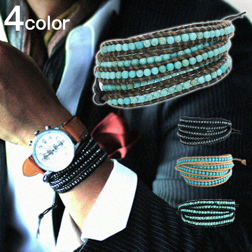 天然石 革紐 ブレスレット メンズ レディース ラップ レザー ターコイズ オニキス ラピスラズリ ヘマタイト 記念日 誕生日 ギフト ペア お揃い カップル 人気 balb-1902