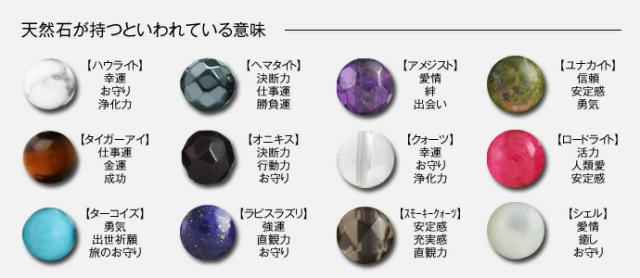 素材 | ハウライト、ヘマタイト、ターコイズ、アメジスト、ユナカイト、タイガーアイ、オニキス、クォーツ、ロードライト、ターコイズ、ラピスラズリ、スモーキークォーツ、シェル、レザー(牛革) |