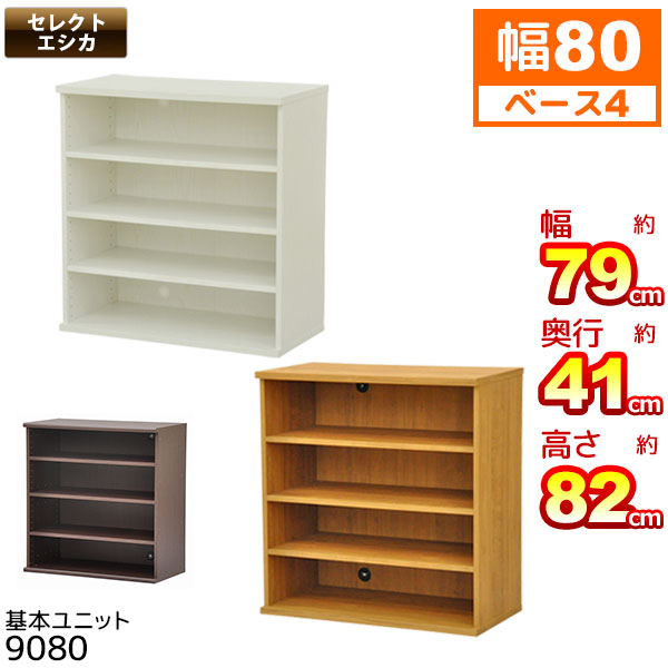 収納棚 幅80cm 奥行40cm セレクトエシカ基本ユニット9080(SS-9080) 幅78.9cm 奥行き39.9cm 高さ82.1cm 収納ラック カラーボックス フリーラック 本棚 隙間収納 すきま収納 すき間収納 収納ボックス ブックシェルフ 木製 ホワイト(白) ライトブラウン(茶色) 組立家具