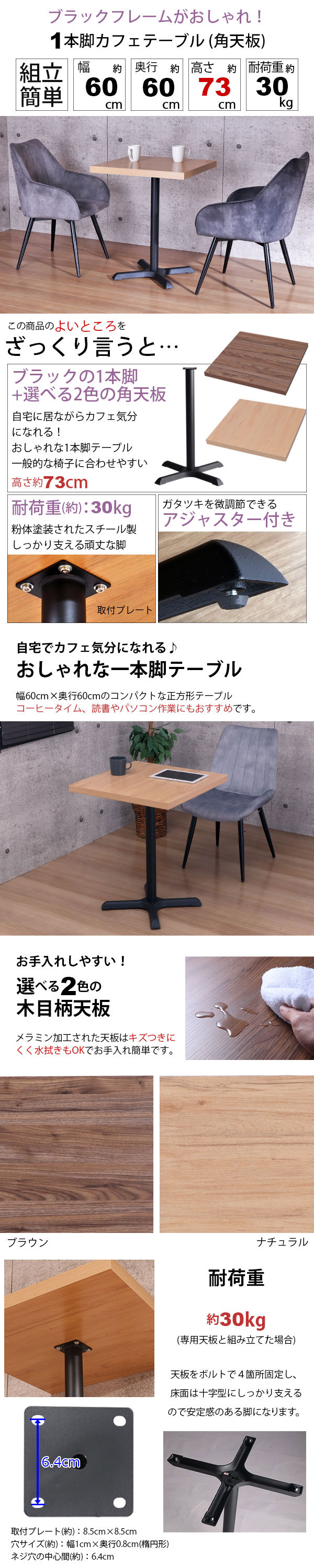 カフェテーブル 正方形 60×60 一本脚 ダイニングテーブル カフェ風 テーブル おしゃれ サイドテーブル パソコンテーブル カウンターテーブル ワークテーブル コンパクト 木製 ブラックスチール脚 クロス脚 幅60cm 奥行60cm 高さ73cm ブラウン ナチュラル アジャスター付き 家具 インテリア テーブル 机 1本脚 パソコンデスク PCデスク 作業机 在宅勤務 リモートワーク テレワーク ソファテーブル サークルテーブル ディスプレイテーブル 飾りテーブル 新生活 一人暮らし ワンルーム リビング オフィス 店舗 ショップ 飲食店 カフェ コインランドリー サロン 寝室 玄関 ソファサイド ソファ横 ベッドサイド ベッド横 シンプル モダン スタイリッシュ かっこいい シック かわいい お手入れ簡単 水に強い 傷に強い 木目調 組み立て簡単 おうちカフェ