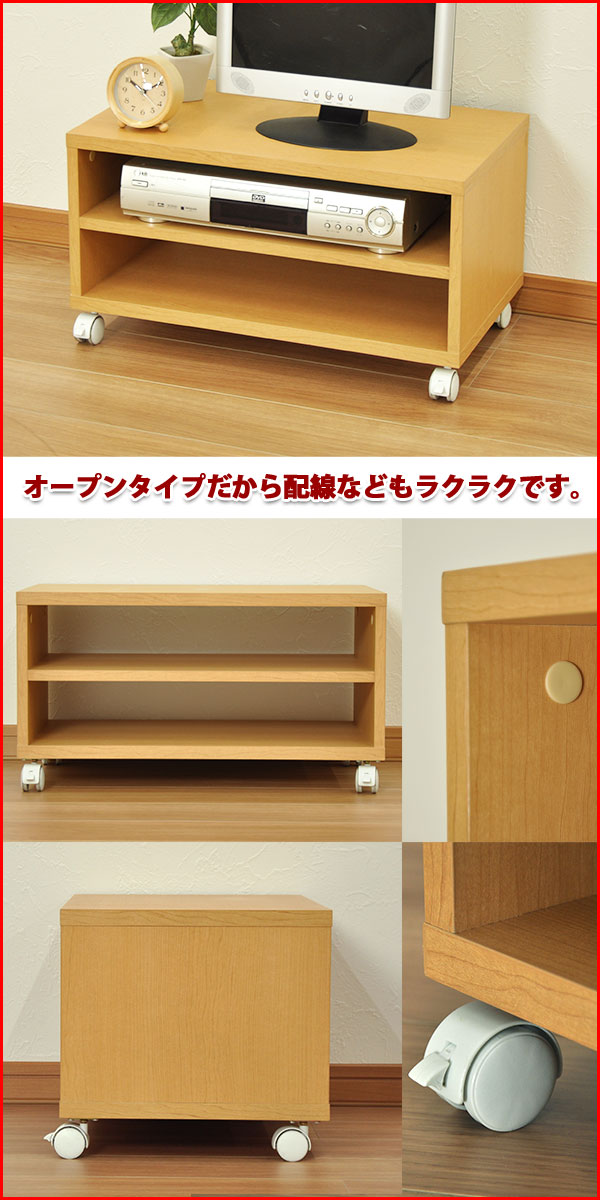 シンプルデザインのオープンタイプのサイドテーブル、テレビ台