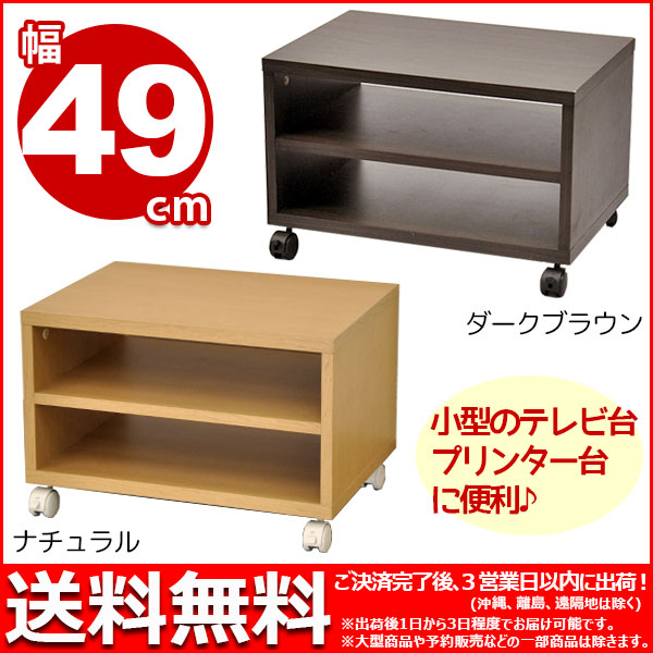 プリンター台 テレビ台 キャスター付き 50幅 おしゃれ プリンターラック TV台 小さい ローボード サイドワゴン 3段 オープンラック サイドテーブル 低い 頑丈 幅49cm 奥行35cm 高さ32.8cm 木製 AVラック レコーダー デスク下 一人暮らし ダークブラウン ナチュラル