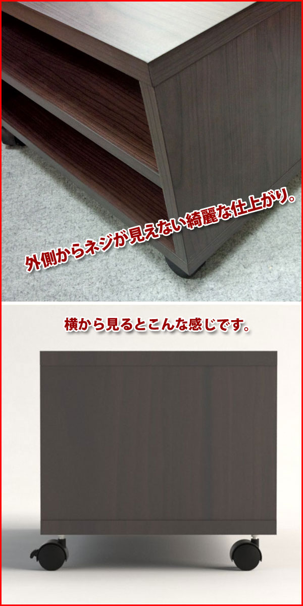 ネジ穴が見えない綺麗な仕上がりのキャスター付きラックです