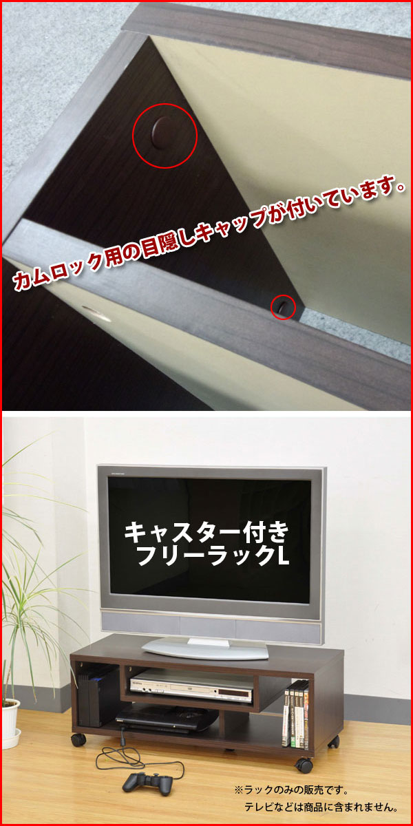 | キャスター付きフリーラックLは、ネジ穴が見えない綺麗な仕上がりのキャスター付きTVラック♪ |