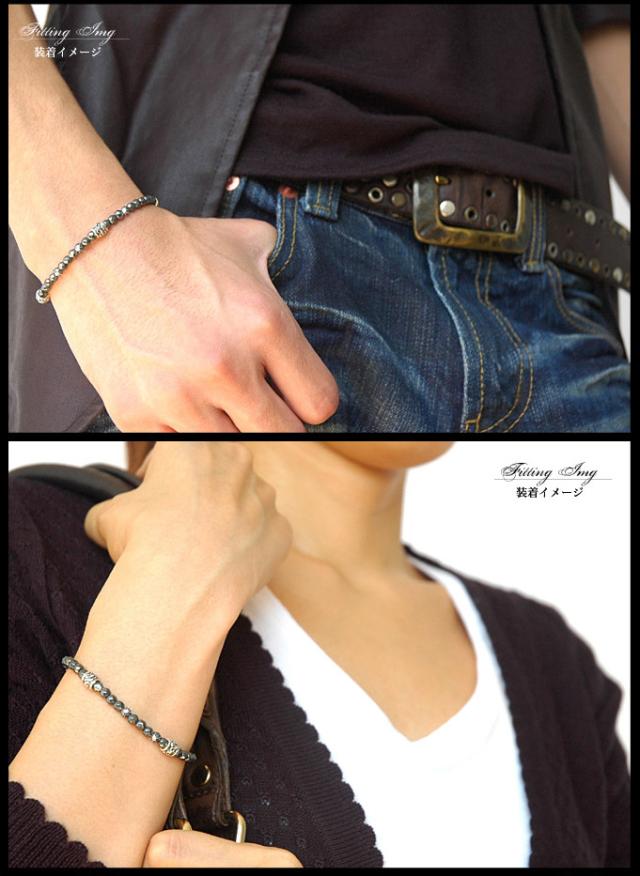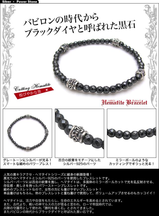 ブレスレット メンズ・レディース パワーストーン シルバーアクセサリー ヘマタイト フレア・百合の紋章 b0533