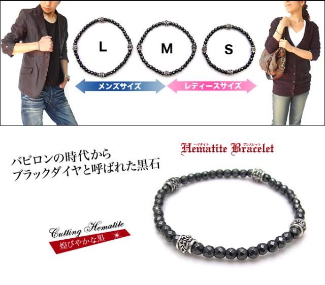 人気の黒キラアクセ・ヘマタイトシリーズに細身の新顔登場!黒光りのヘマタイトとシルバー925のパーツを使用したブレスレットです。シルバーパーツには百合の紋章を施し、ヘマタイトは、多面体のミラーボールカットで光を乱反射させる、存在感・美しさを持ったパワーストーンブレスレットです。細めのブレスレットなので、女性の方にも着けやすいブレスレット!単品着けはもちろん、他のブレスレットと重ね着けで使用して、ボリュームアップさせるのもカッコイイヘマタイトは、活力や自信をもたらし、生命のエネルギーを高めるとされています。また、古代より、戦いの神マルスの力が宿ると言われ、ローマ帝国時代では、兵隊の守護符として使われ「勝利を導く石」とされてきました。またバビロンの時代からブラックダイヤと呼ばれた黒い石です。■幅:最大6mm 重さ:9.0g前後■シルバー925■ヘマタイト≪c-code≫ グレー
