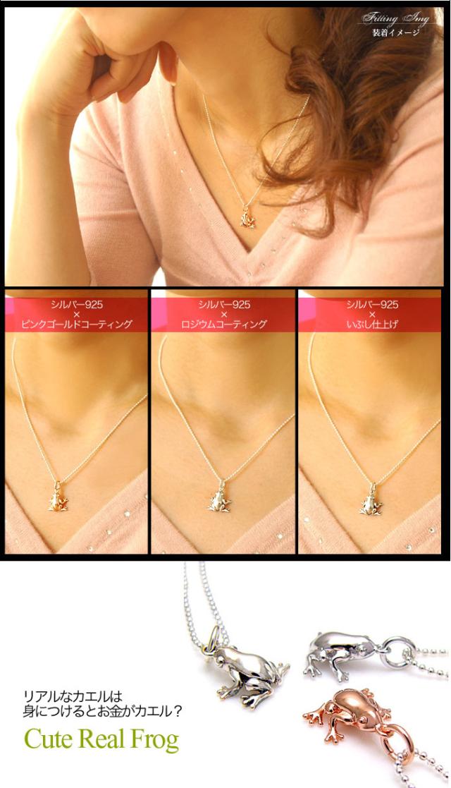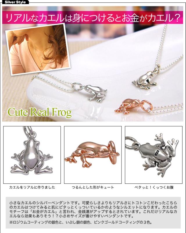 小さなカエルのシルバーペンダントです。可愛らしさよりもリアルさにトコトンこだわったこちらのカエルはつけてみると肌にピタっとくっついているかのようなシルエットになります。カエルのモチーフは「お金がカエル」と言われ、金銭運がアップするとされています。これだけリアルなカエルなら効果もありそう!?小さめサイズが着けやすいペンダントです。※ロジウムコーティングの銀色と、いぶし銀の銀色、ピンクゴールドコーティングの3色。■長さ:1.7cm 幅:1.2cm 厚み:0.5cm 重さ:1.8g (バチカン含む)≪c-code≫ ピンクゴールド