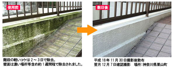 コケやカビを一発退治!人気のキエ〜ルコケ・カビにお得な1リットルタイプが登場!業務用としてもどうぞ。5倍に薄めてスプレーするだけで外壁、ブロック塀、コンクリート塀などが綺麗に!銅イオン配合で殺菌、コケ除去率アップ!スプレーするだけで、水洗いをする必要はありません。主成分の塩化ベンザルコニウム液は、医療現場でも殺菌消毒などに使われている、安全性の高い成分です。 ほとんどの外壁に使用でき、環境への影響心配全く無し!