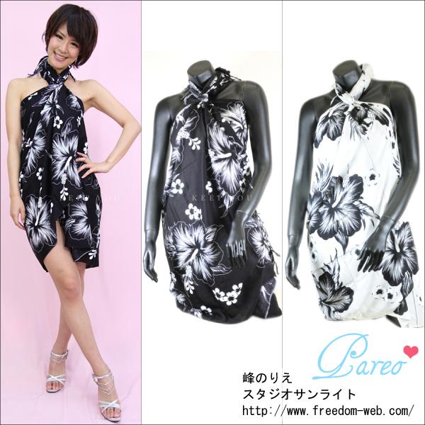 パレオ モノクロ 白黒 ハイビスカス 花柄 全2色 パレオ バンドゥビキニ 三角ビキニ ワイヤービキニ 水着とコーディネート p-064 ┃