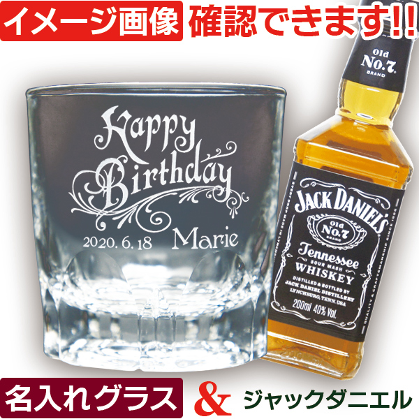 誕生日プレゼント グラス 名入れ & ジャックダニエル 200ml ウイスキー グラスセット おしゃれ 化粧箱入り 名前入り ギフト 男性 女性 彼氏 彼女 友達 成人 二十歳 記念品 昇進 送別 還暦 古希 祝い 退職 退官 勇退 受賞記念 御祝 AR