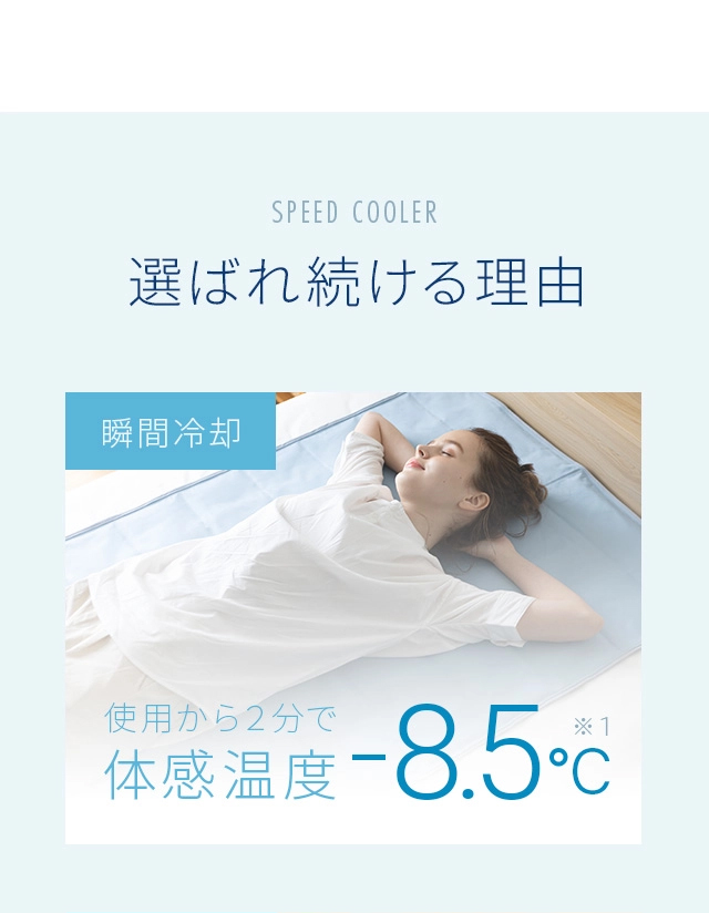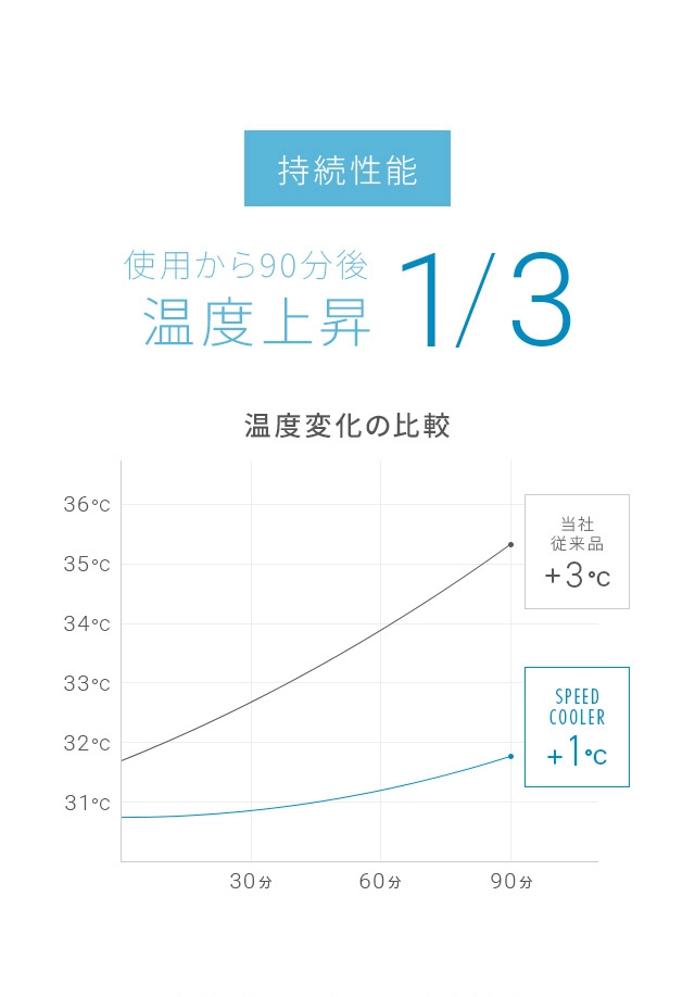 スピードクーラーには室温を下げる効果はありません。30℃以上の室内では熱中症防止のため、冷房器具との併用をお薦めします。