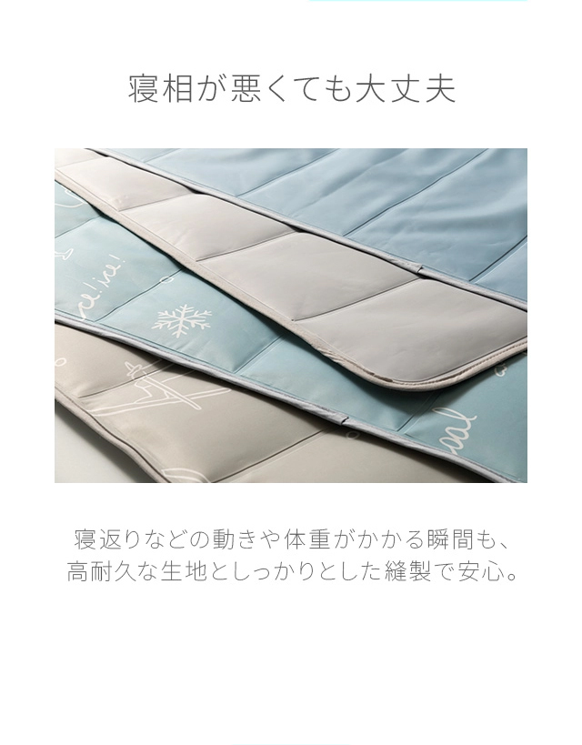 - 冷たい事は冷たいそうですが、四隅に引っ掛ける 仕様になっていない為、高齢の幅は、半分に折って 足下に敷いて使っているみたいです。