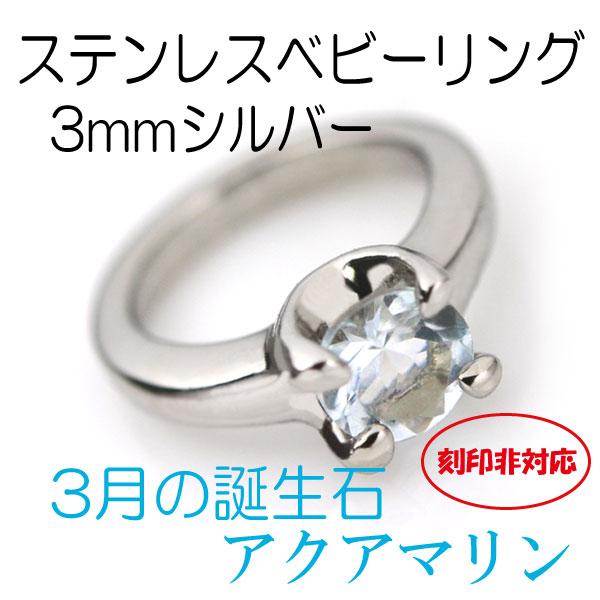 刻印非対応 サージカルステンレス製 ベビーリング 3月アクアマリン 3mm シルバーモデル
