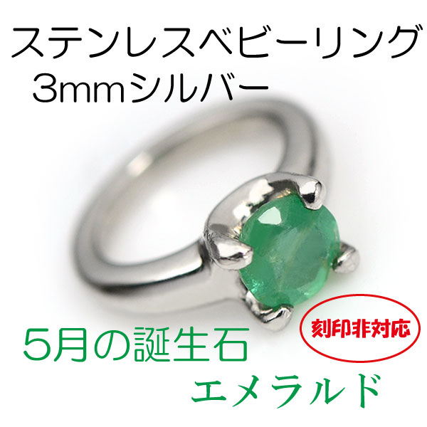 刻印非対応 サージカルステンレス製 ベビーリング 5月エメラルド 3mm シルバーモデル