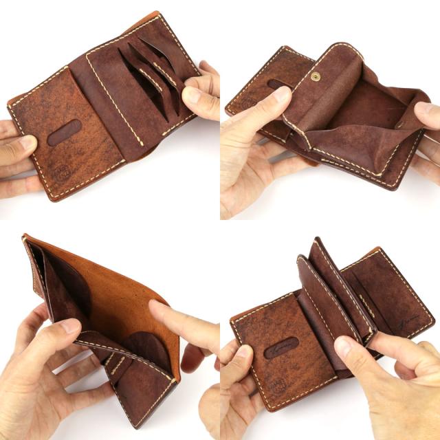 二つ折り財布 D WALLET 手縫い 札入れ 小銭入れ LITSTA 日本製 本革 財布 ムラ染めレザー イタリアンレザー 牛革 ヌメ革 本革財布 レディース セパレート 多機能 コンパクト カード 入れ 多い リティスタ PUEBLO プエブロ ハンドクラフト 送料無料 レッド/ブラウン/グレー