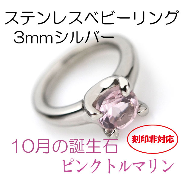刻印非対応 サージカルステンレス製 ベビーリング 10月ピンクトルマリン 3mm シルバーモデル