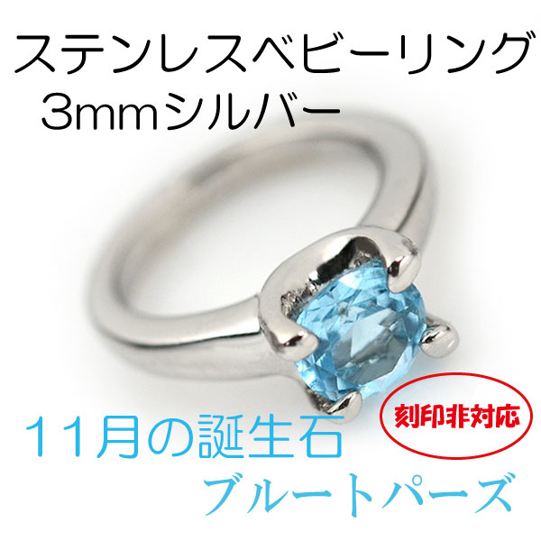 ブルートパーズ ベビーリング 刻印非対応 サージカルステンレス製 11月3mm シルバーモデル